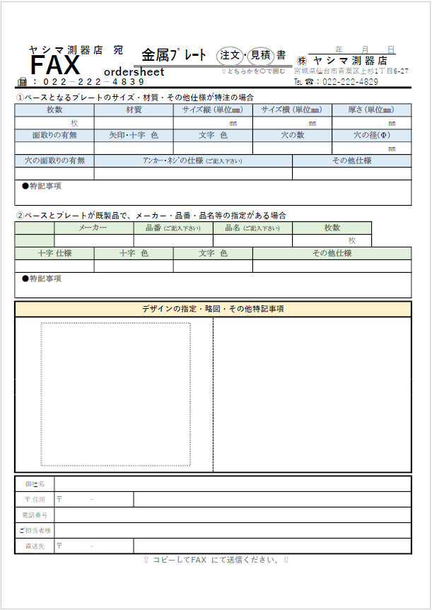 金属 プレート・鋲 オーダーシート (見積書・注文書)